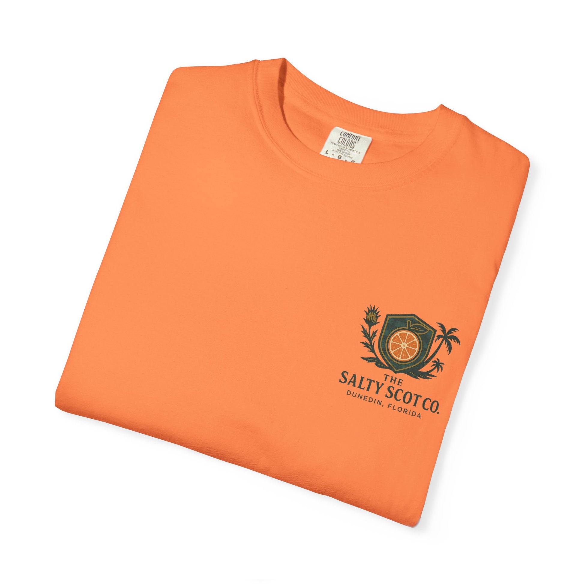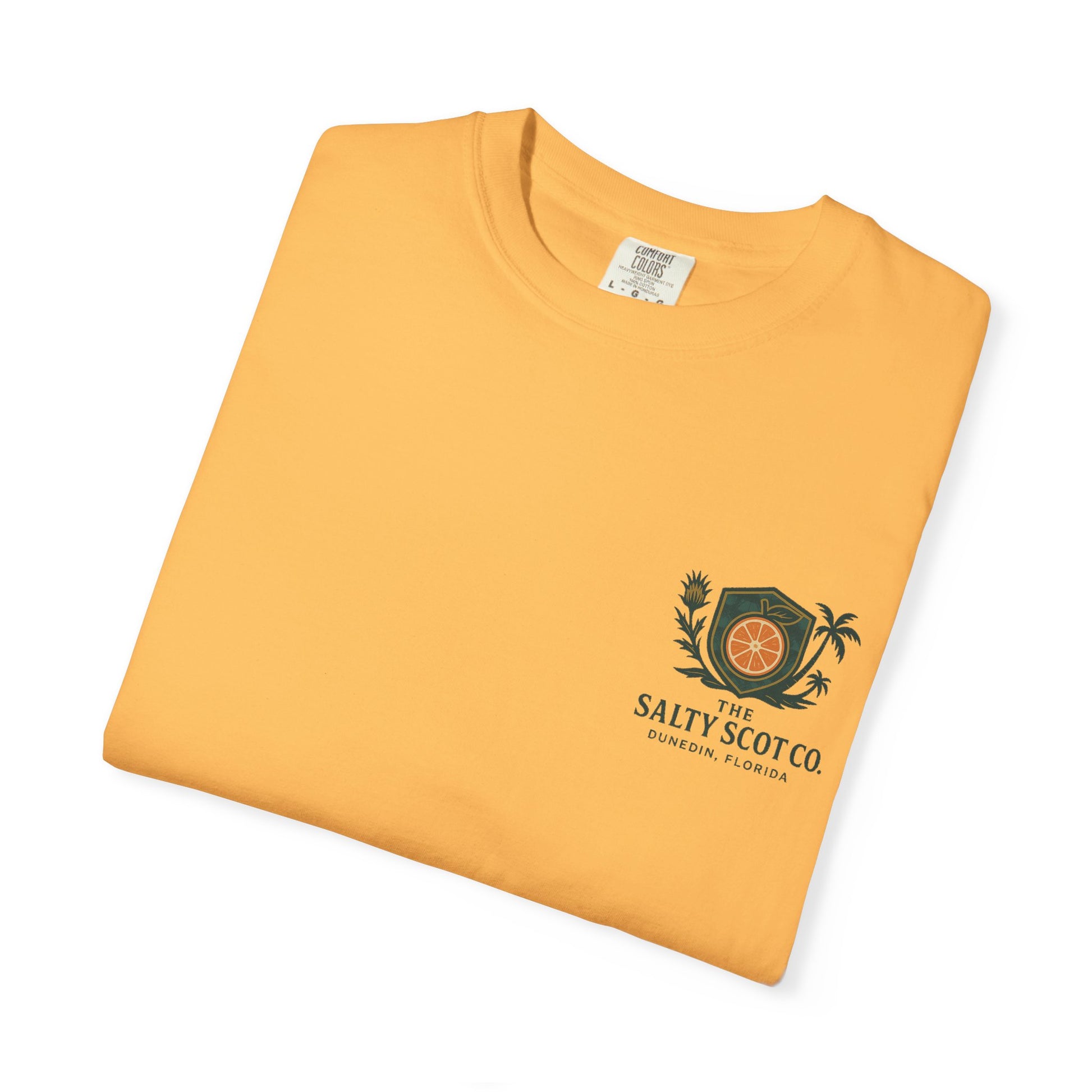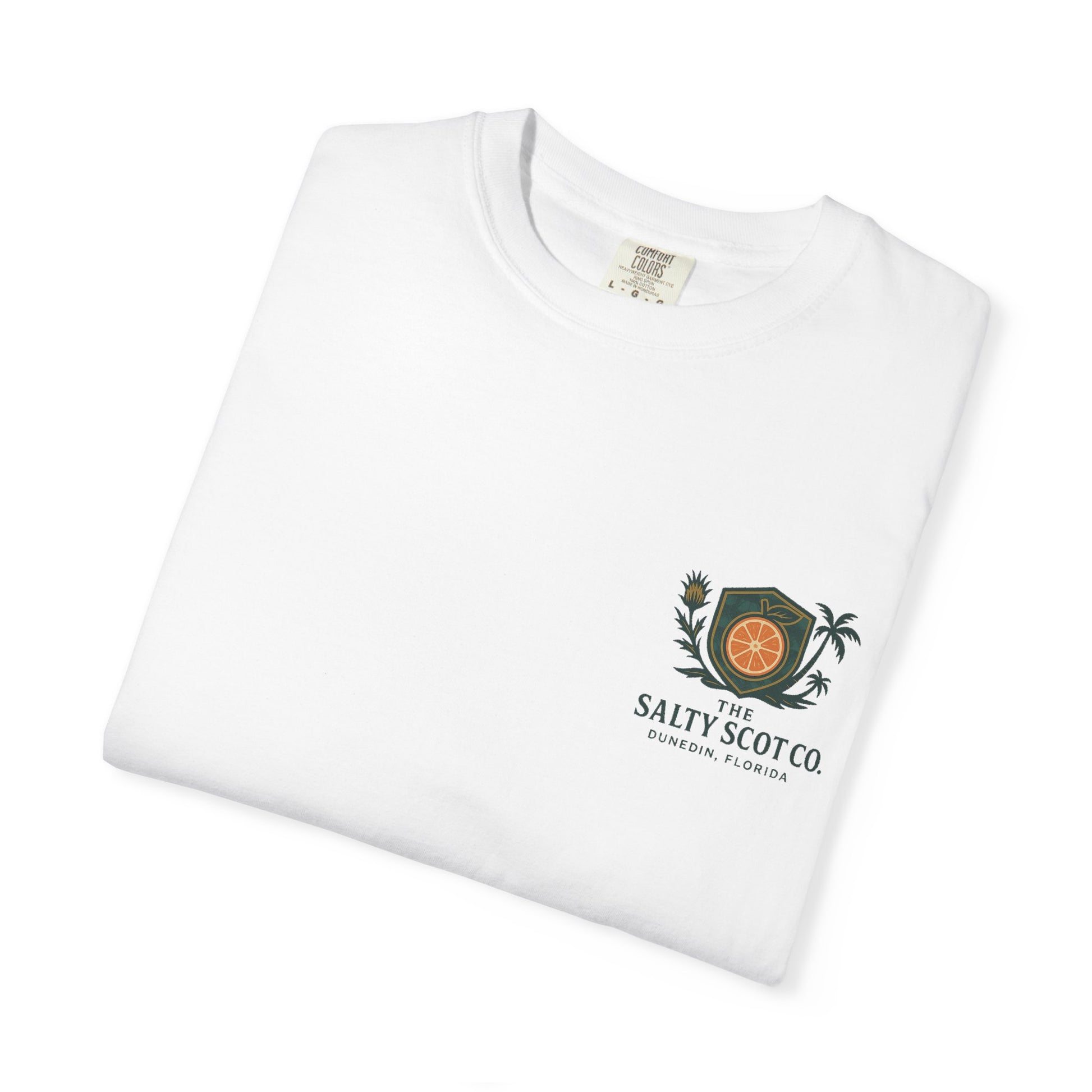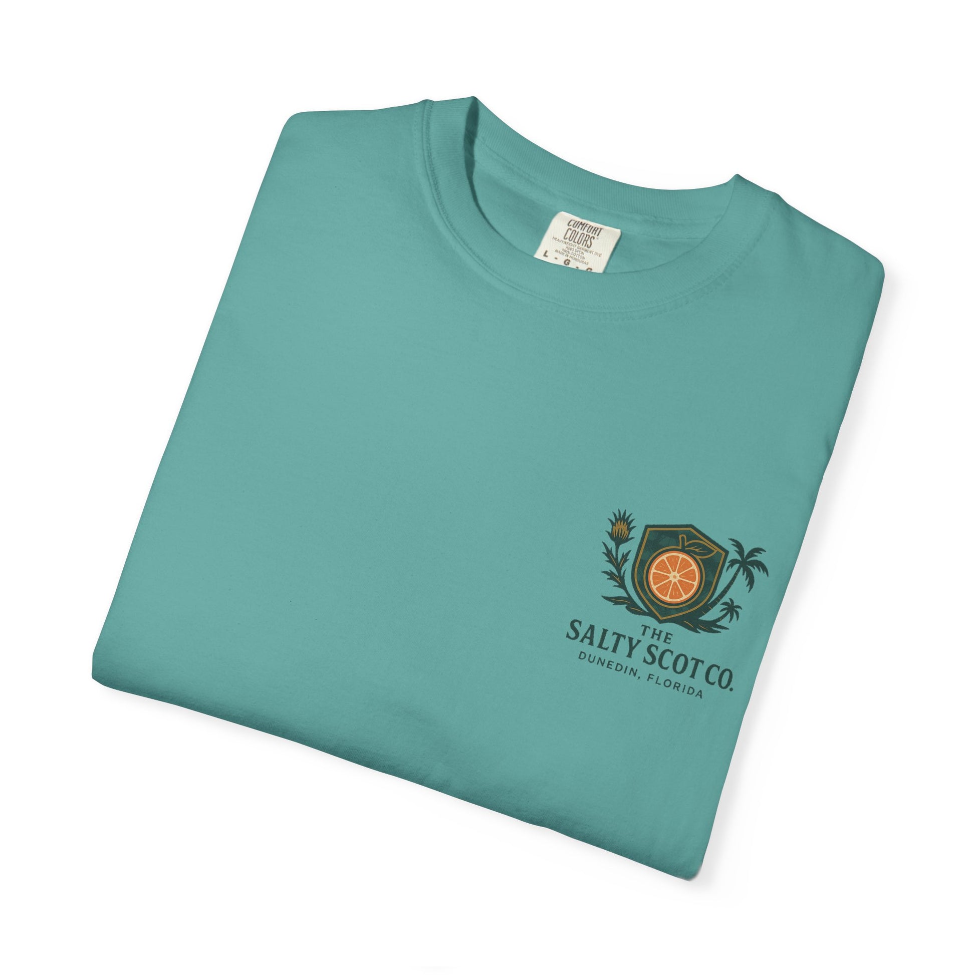 Where Scottish pride meets Florida tides - this tee is a tribute to Dunedin's one-of-a-kind coastal, Celtic culture. Designed for locals, lovers of tradition, and anyone vibing with tartan at the beach!